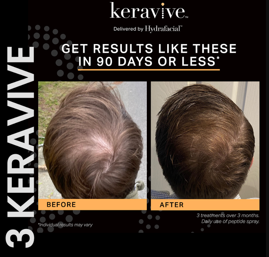 At Aesthetic Elevation Knox, Keravive is commonly paired with regenerative hair treatments such as PRP and exosomes to enhance results. For best outcomes, we recommend a series of three treatments spaced one month apart, along with a take-home peptide spray to support daily scalp health between visits.